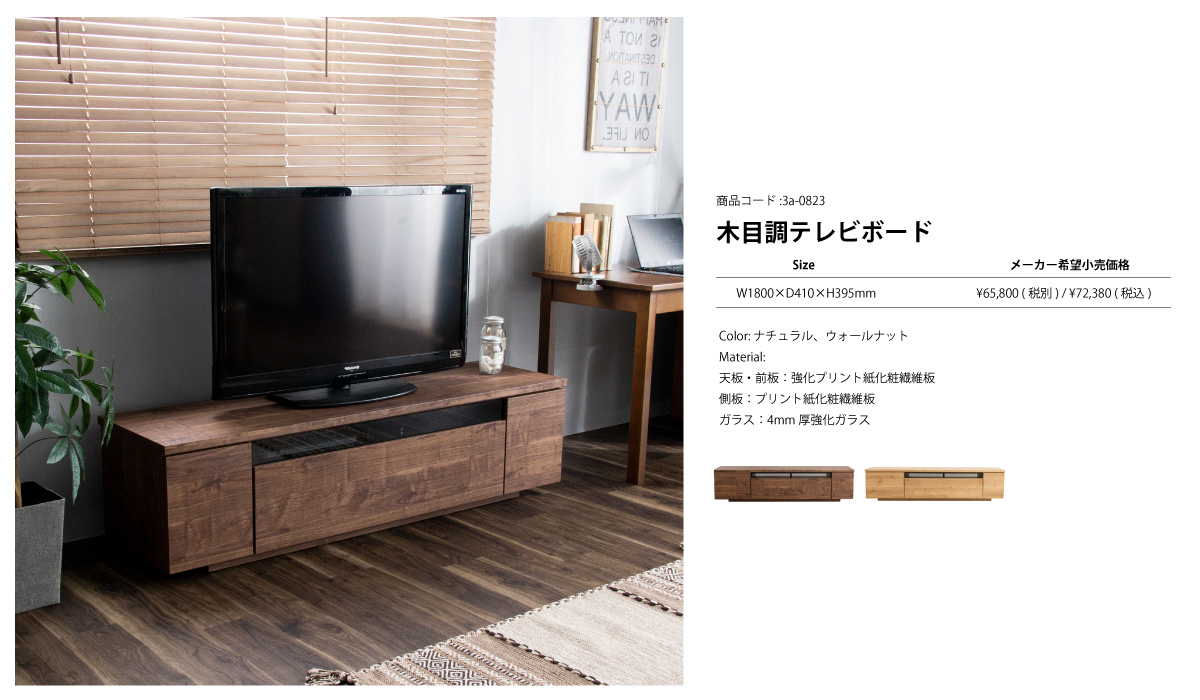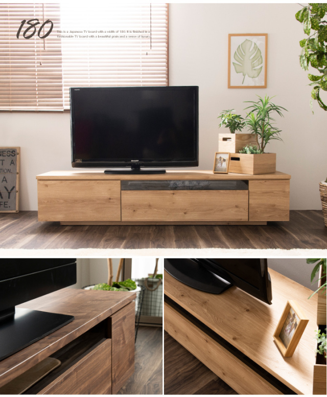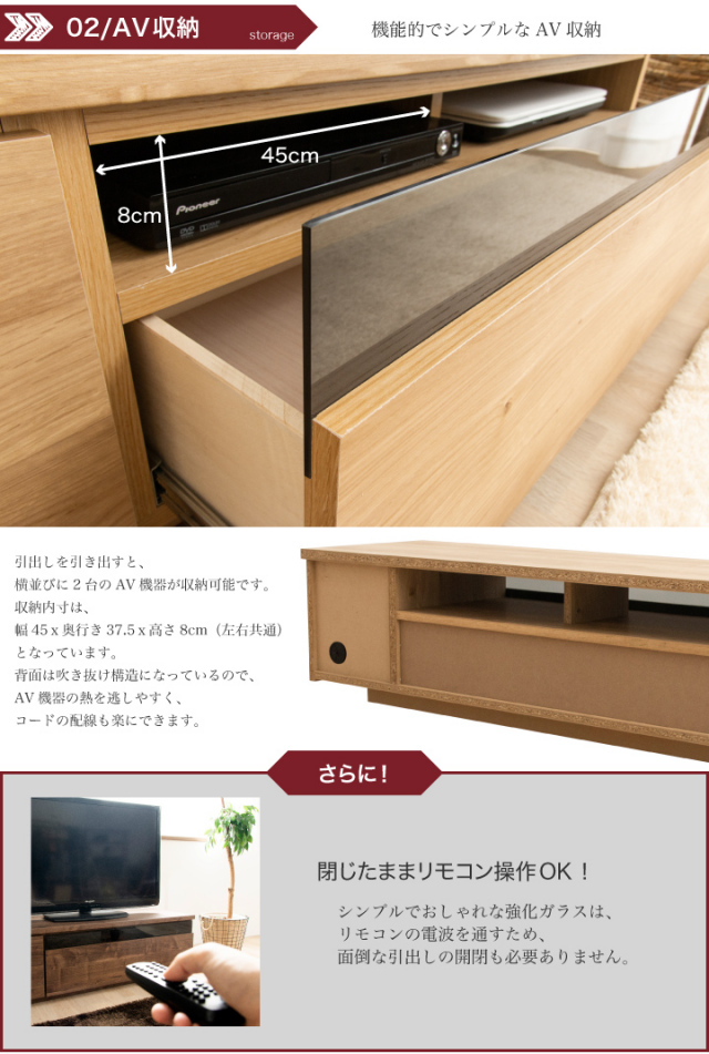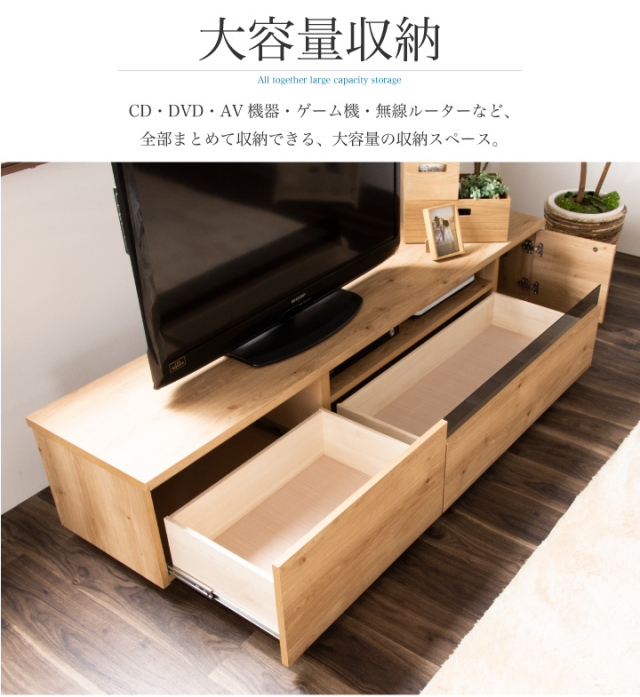 大容量収納の高級感ある木目デザインの国産テレビボード。大型テレビ対応です