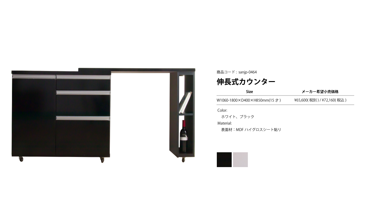 | 材質 | 表面材:MDFハイグロスシート貼り |