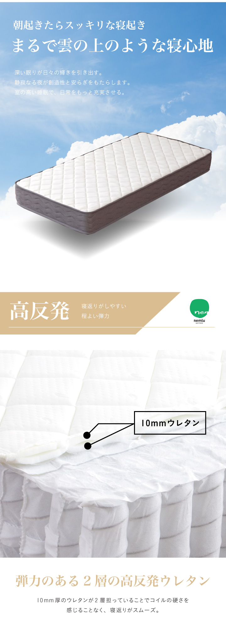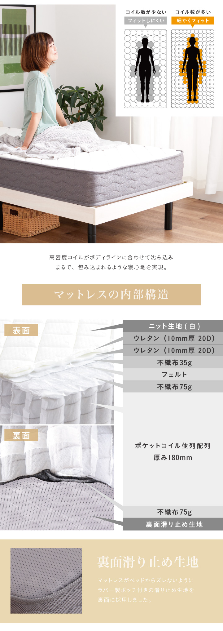 最安値に挑戦 話題の圧縮タイプの搬入もコンパクトでラクラクなポケットコイルマットレスです。点で身体を支えるのでしっかりフィット至高の寝心地を提供します。
