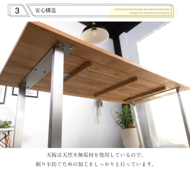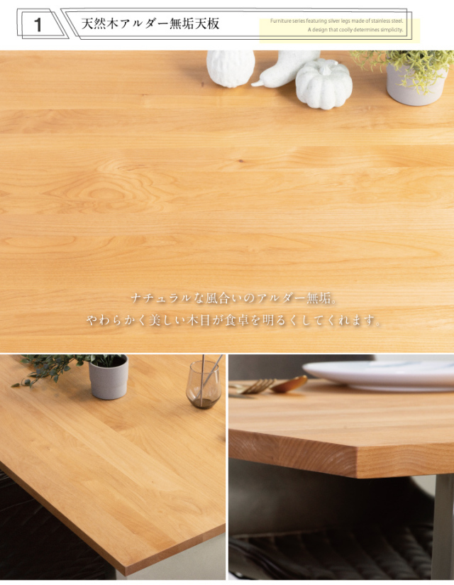 天板:アルダー無垢材・オイル塗装 脚:ステンレス |