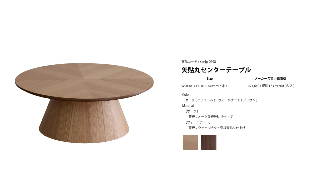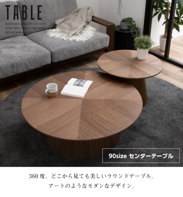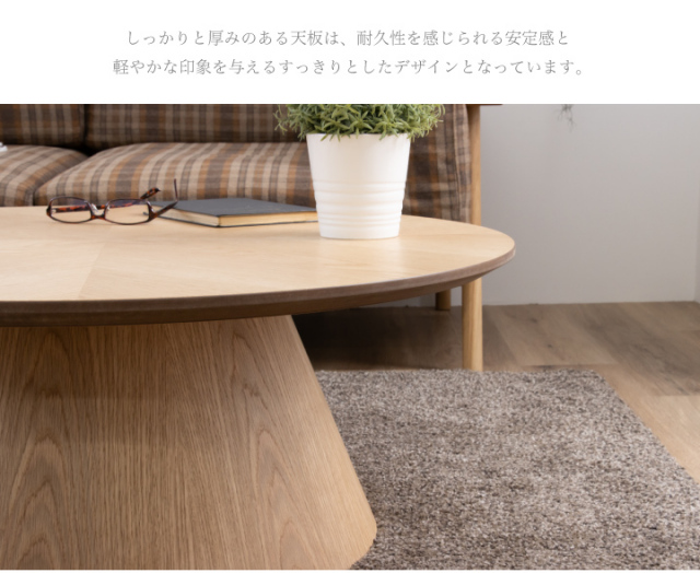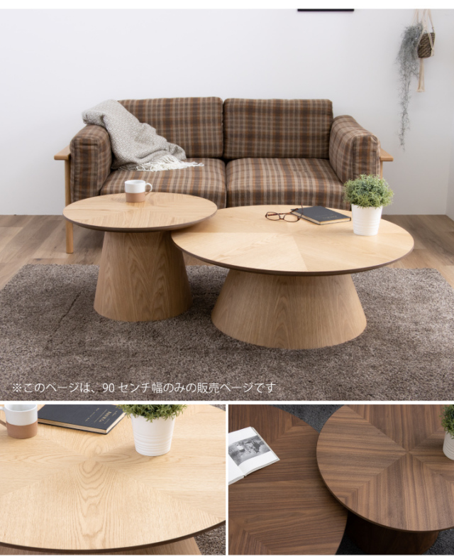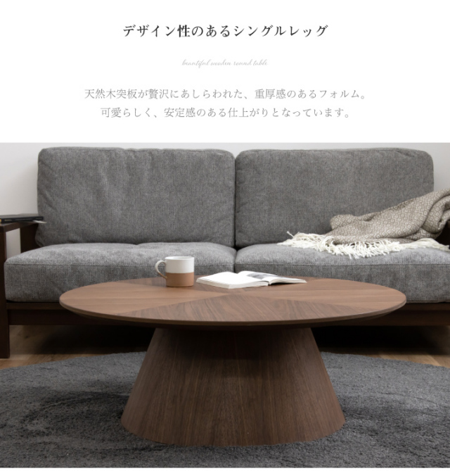 天然木突板のヘリンボーン柄天板がおしゃれな丸形センターテーブルです。| 材質 |