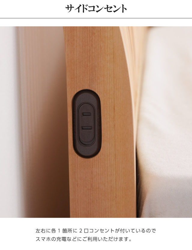 輸入品 お客様組み立て品 左右に各1箇所 2口コンセント付き お掃除ロボット対応(木製脚160mm) マットレスは別売り |