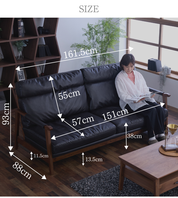 幅161.5cm×奥行88cm×高さ93cm(座面高38cm) |