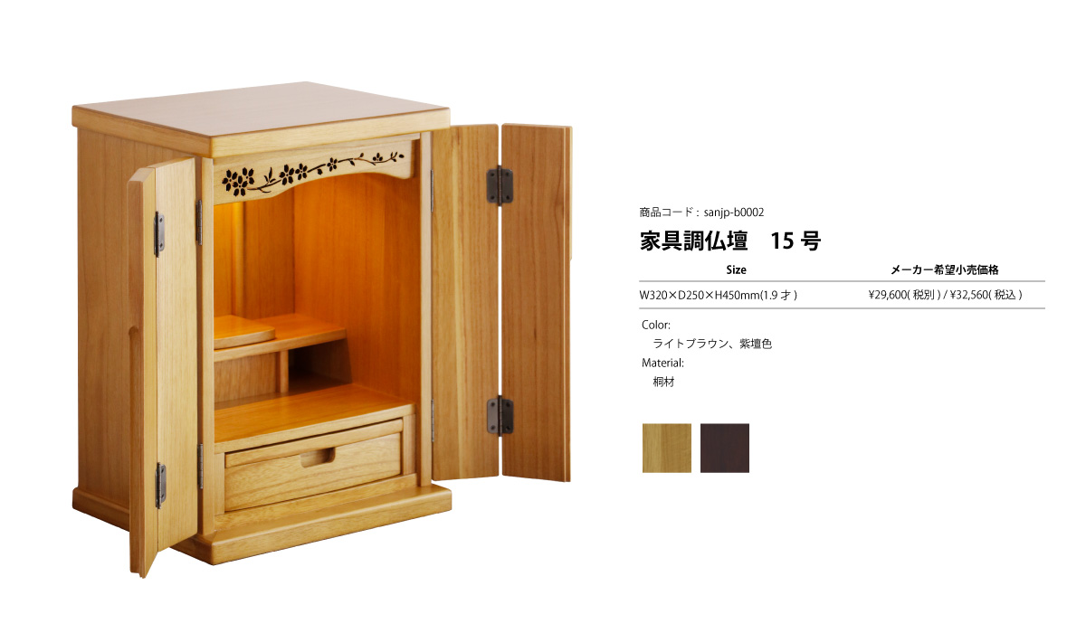 オシャレな桜柄の欄間がおしゃれで風情のあるコンパクトなミニ仏壇です。| 材質 | 桐材 |