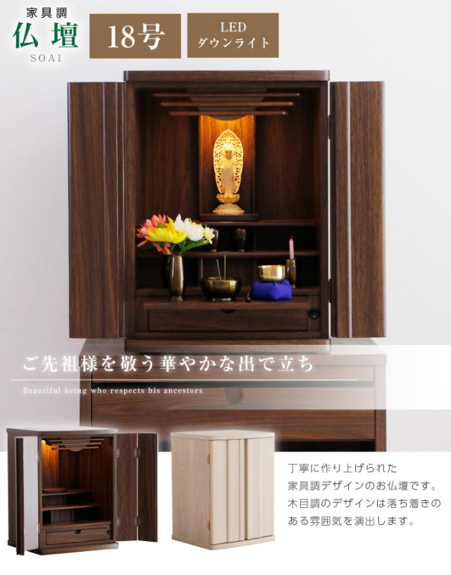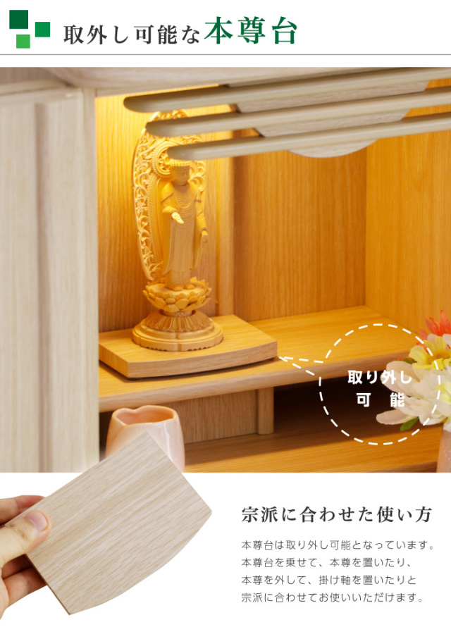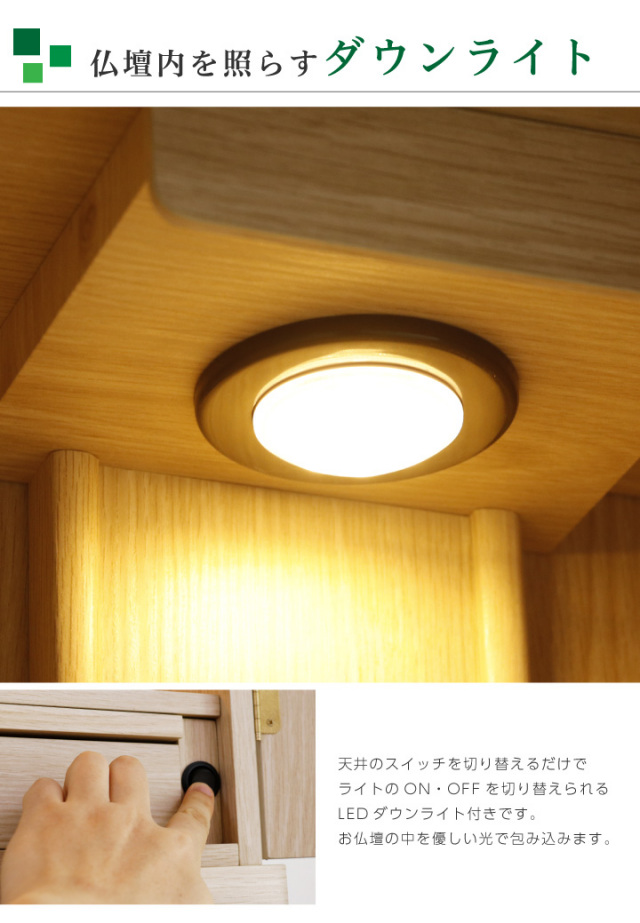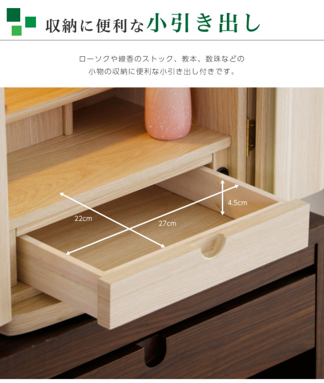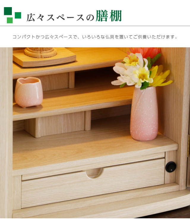 ・完成品 ・輸入品 ・本尊台付き ・膳引き付き ・引き出し付き ・LEDダウンライト付き |