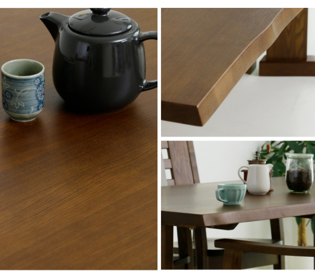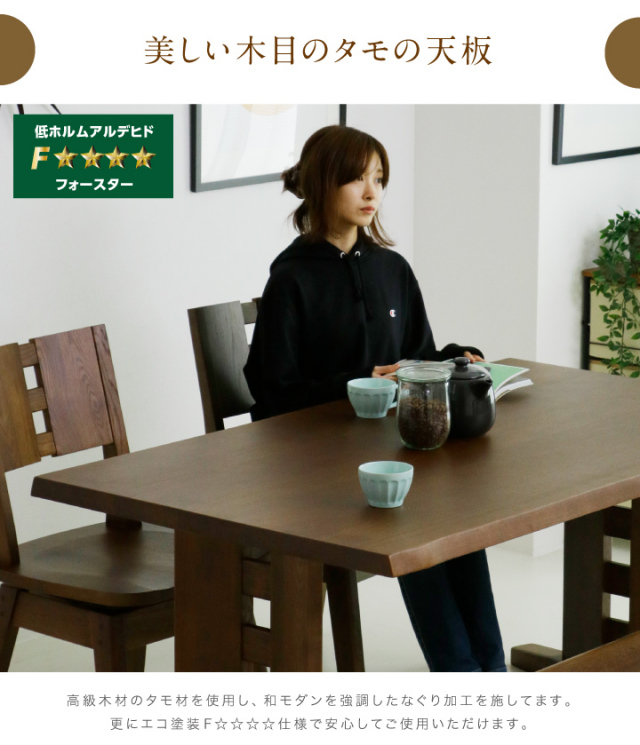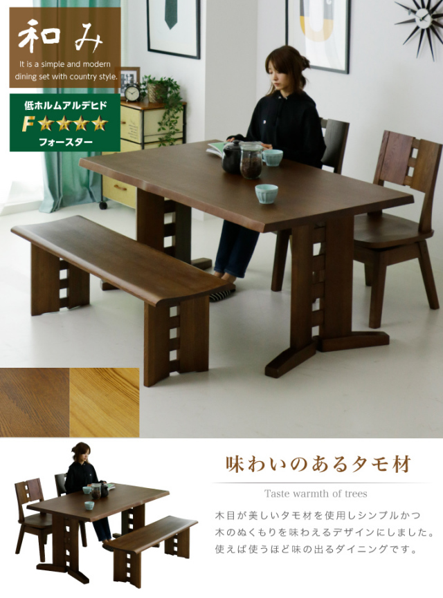美しい木目が特徴のタモ材を贅沢に使用した和風テイストのダイニングテーブルセットです。
