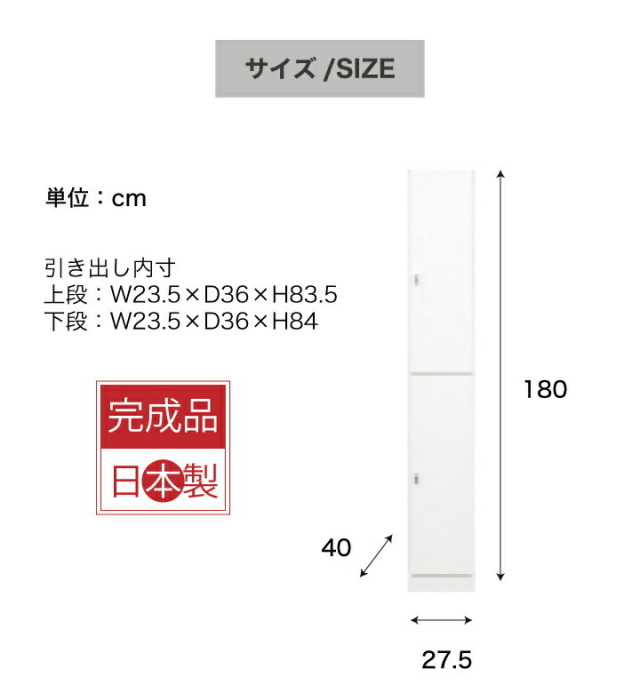 2.5cm刻みのサイズ展開!扉+扉タイプと扉+引出タイプ2タイプ、全18種類あります。